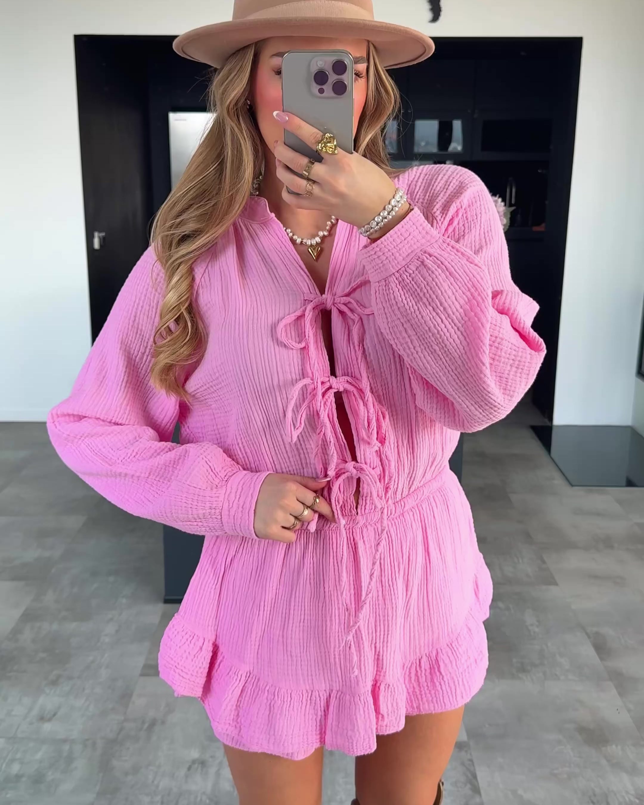 - kurzer Musselin Playsuit mit langen Ärmeln