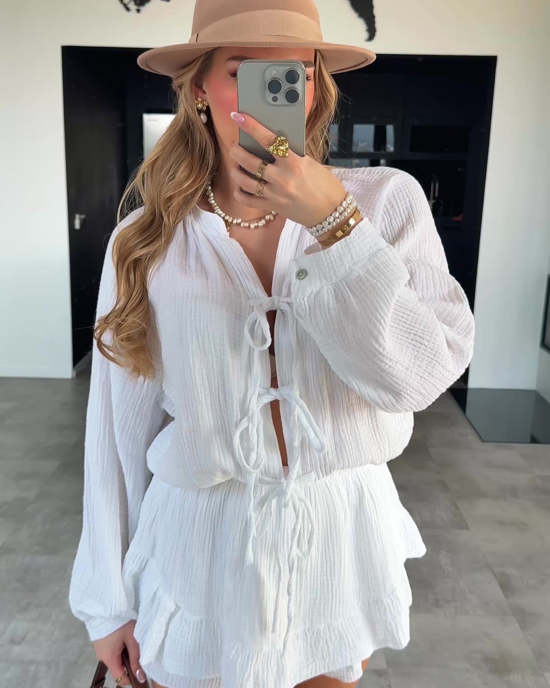- kurzer Musselin Playsuit mit langen Ärmeln
